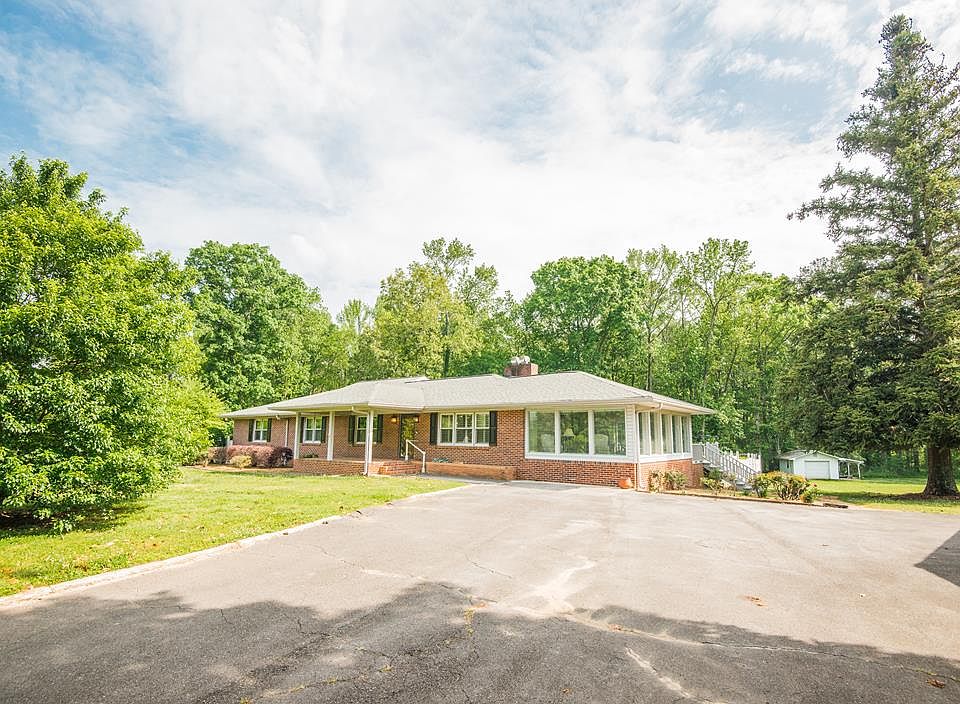 This brick home comes with your own oasis. Home features formal dining room, living room with 2 side gas log fireplace, sunroom with ceramic tile, kitchen with granite countertops, and breakfast area. Step out the sliding glass doors in breakfast area onto a spacious deck overlooking the swimming pool area. This property offers +/- 2.69-acres with a pool shed, 2-car detached garage and storage building for all of your tools. There are several mature trees on the property. Very convenient to interstate. Estate owned property which is being sold in the present "AS-IS" condition with no warranties written or implied.