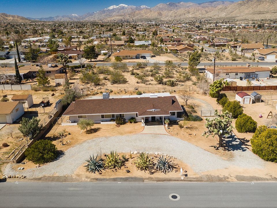 If you've been looking for an Airbnb or a full-time residence in Yucca Valley this is a must see! No home behind or in front. Great curb appeal day or night. Circular driveway with lots of parking and 2 car garage with entrance around back. Beautiful views with fully fenced yard. This home is nicely appointed with smooth ceilings and recessed lighting, large windows in Living Area for that open country feeling. New ceramic tile floors throughout, new HVAC and swamp cooler. Guest bathroom has been remodeled. Large covered back patio to enjoy for entertaining to back yard which is the perfect space to add a hot tub and/or pool. Bring your RV's, cars, toys, dogs or? Located near Joshua Tree National Park main entrance. Don 't let this one pass you by! *No more showings. seller is reviewing offers.