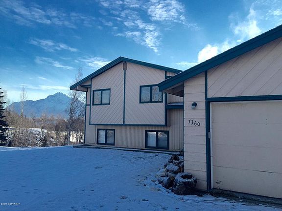 Wonderful Tri-level home in easy commute location near Mat-su Hospital. In addition to 3 bedrooms, 2.5 baths, this home has fantastic mountain views, two living areas, a Sun Room and an Office with double doors to back yard. The Sun Room is attached to the Master Bedroom which features His and Her closets and a Master Bath with a stand up shower. The downstairs living area has a wood burning stove
