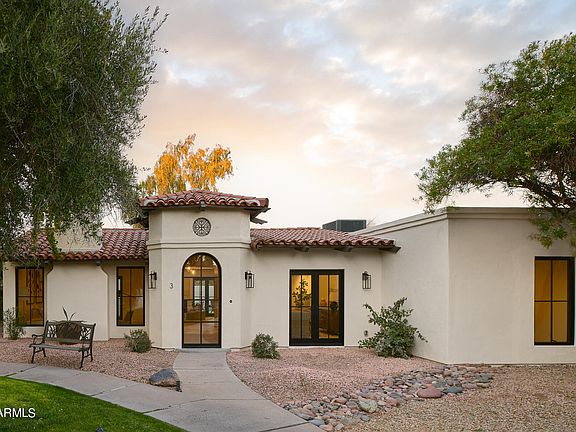 Tucked away from traffic, yet close to the attractions of Scottsdale and the luxury resorts of Paradise Valley, including the new Ritz Carlton, this completely redone property is a lovely mix of beauty, warmth and contemporary clean lines. The design harkens back to Arizona's Southwest roots with earthy textures of Saltillo tile, wood and natural stone. New windows and doors usher in soft sunlight to the newly imagined interior spaces. An opened-up kitchen is the heart of the home, with porcelain countertops and enchanting breakfast nook. Original wood-burning fireplaces in the living room and den/3rd bedroom mean evenings with mesquite wood crackling in a cozy fire. Private patio spaces invite you to lounge in the warmth of spring in the desert. This is what Arizona living is all about.