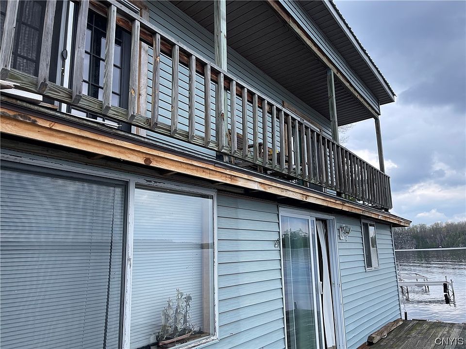 Currently used as a seasonal property. However could certainly be turned over into year-round living. You can’t get any closer to water front living with out getting wet. Could you imagine waking up every morning with your French doors opening to a deck right off of your bedroom? The views are endless every morning and every evening when you turn in. The view is a little different from the upstairs location of the bedrooms and downstairs you will find the main living area, kitchen, and dining. Where a sliding glass door opens right to the deck over the water. Grab your morning cup of coffee and sit out front and take in more beautiful views. Maybe say hi to a fisherman passing by. You can also find a small shed behind the camp/new home. Currently lake water is used for the home for showers and dishes and you must bring your drinking water. The septic is a holding tank that pumps to a letchfield at the top of the hill for efficiency the pump was replaced less than two years ago for that. There is definitely some general maintenance that needs to be maintained in a property such as this. Most of the content in the main building will convey with the sale.