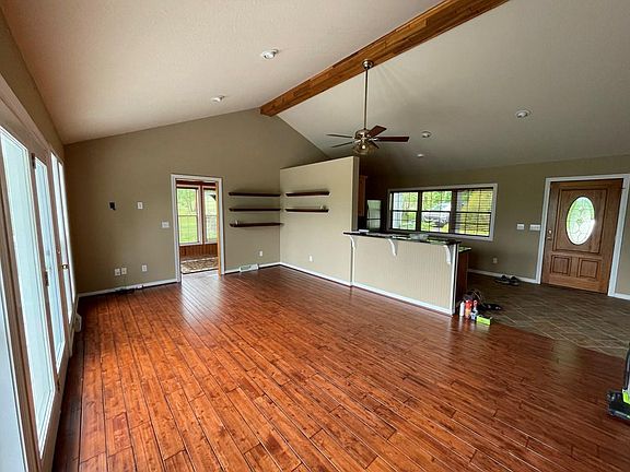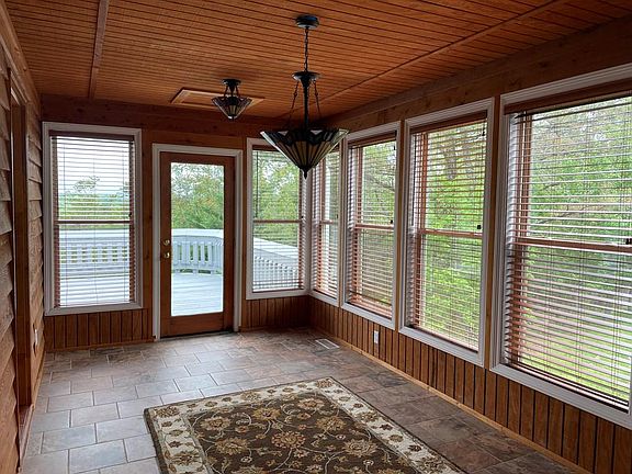 Come and enjoy your own piece of paradise and relaxation. This home offers 3 bd/3 full baths. Open concept floor plan for kitchen/living room. Kitchen offers custom made cabinets, granite countertops and tile backsplash. Living room offers windows with loads of natural light coming in with views of the large upper open deck area. The living room leads into a sunroom/dining area. Two bedrooms with one en suite master bedroom and another full bath. The finished basement offers living room area, one bedroom with walk-in cedar closet, storage/office room, full bathroom and washer and dryer closet. Pathway from the covered front porch leads to the detached garage area that offers space for the boat you will want to buy to spend those hot summer days on the lake. Starpoint, Eagles Cove and Sunset are all within minutes of the home. The basement has a walk out to the lower open deck area with hot tub. Views of lake is seasonal but with a little clearing of trees can be year round.