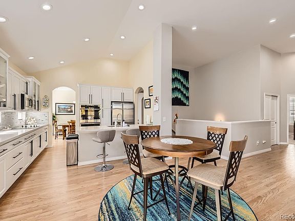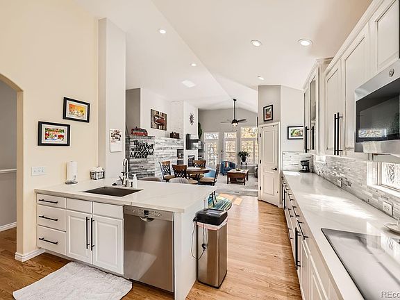 Rare listing in the highly desirable Songbird neighborhood that backs to the "Pocket Park". Experience one-level living at its finest in this beautiful 3 bed, 4 bath ranch home, located in a gated community that offers maintenance-free living as the HOA takes care of the snow shoveling and lawn mowing. This beautiful home is move-in ready with numerous upgrades and it backs to the quiet and serene "Pocket Park". It is light and bright with plantation shutters throughout and hardwood and LVP plank flooring. The updated kitchen boasts white cabinets, quartz countertops and stainless steel appliances. You will especially enjoy the remodeled master suit with plank flooring, custom tiled shower & tub and a double-sink vanity with granite counter. The main floor also has a spacious living room with a gas fireplace, a second bedroom, two additional bathrooms, formal dining room, a study / office and laundry room. Step out back onto the maintenance-free composite deck with a retractable awning to relax and/or entertain while overlooking the peaceful park. Downstairs you will find a large family room with plank flooring, a third bedroom, a workshop / flex room, and a large utility room with plenty of storage space. Great location with easy access to the mountains and numerous bike paths and parks. Be sure to ask for the upgrades list that is too long to insert here.