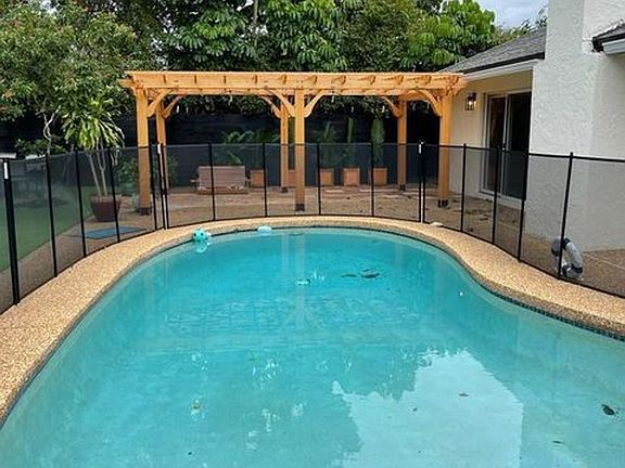 Heated poolOpen air floor planOutdoor living spaceLovely pergolaLight and bright environment