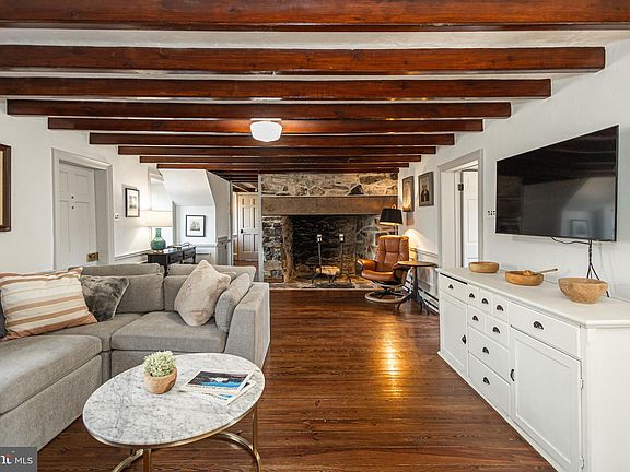 Discover this 18th-century Bucks County retreat set upon 10 private and tranquil acres of rolling lawns, native blooming meadows, lush woodlands, and stately stone walls. Originally built in 1737 and renovated and expanded in 2009 by the current owner, this lovely stone and frame farmhouse boasts every modern comfort while celebrating its colonial heritage. Upon entry, you’re welcomed by historic charm and details throughout with wide-plank pine floors, deep windowsills, and exposed stone. The sun-drenched dining room and living room feature a mantled fireplace and a wall of French doors leading to a stately stone patio. The cozy wainscoted family room is adorned with an exposed beamed ceiling and an original stone fireplace leading to an expansive chef’s kitchen. With abundant custom cabinetry, soapstone counters, a farm sink, a beautiful 6-burner gas range/oven, and a breakfast nook draped with dual patio French doors offers an exceptional backdrop for entertaining. The main level also includes a half-bath, convenient mud room with a hidden dog shower, and a private guest wing with a bedroom, full-bath, and a private entrance. Ascend to the second floor via the centrally located turned staircase to find a ship-lap accented primary suite complete with a wood-burning fireplace, 2 walk-in closets, and a full spa-like bath. Two additional bedrooms, with access to a full bath and a laundry room, overlook the picturesque grounds. Level three will surprise you with a wonderful flex space that could easily be used as a relaxing reading nook, office, or hobbyist's studio. Downstairs, the finished basement is currently being utilized as an office and fitness room. Outside, surrounded by the serenity of nature, is a secluded saltwater pool with hot tub and cabana, amazing stone patios with peaceful views, a useful chicken coop, and a collection of gardens that enhance the grounds. This breathtaking property also offers a renovated, multi-level barn complete with a kitchenette, full bath, laundry room, and plenty of versatile open space providing a comfortable haven for large family gatherings. The barn also offers exterior shed space and the nearby hanger supplies sufficient room for lawn and garden equipment. Additional amenities include a generator, radiant heat, UV light water filtration and so much more! Just 90 minutes from NYC and 45 minutes from Philadelphia this is a rare country oasis nestled between the Delaware River and Ralph Stover State Park and just minutes from the shopping and dining of New Hope, Frenchtown, and Doylestown.