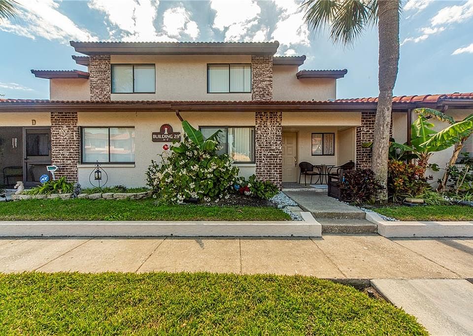 This is a rare opportunity to own a 3-bedroom, 2 bath townhouses in the much sought-after pet friendly Rosetree Village in the hart of Pinellas County. This unit has been tastefully updated with new tile roof, custom kitchen cabinets, granite countertop, flooring and fresh neutral color paint. As you enter through the front door, you'll notice the new laminate flooring and the laundry room on your right. You'll love the open concept as you continue into the living room. The custom kitchen offer wood cabinets, granite countertop, tiled back splash, and electric appliances. Updated bathroom and a bedroom are also located on the first floor. The second floor features a master bedroom and an updated full ensuite bathroom. Additional storage and third bedroom complete the second story. There is an additional 7' by 20' bonus room and fenced in 8' by 24' outdoor patio. The community offers a clubhouse, two pools, a basketball court, and a playground. Low HOA fee covers water/sewer, trash, cable, grounds maintenance and recreational facilities. No flood insurance required and no age restrictions. Don't wait schedule your showing today.