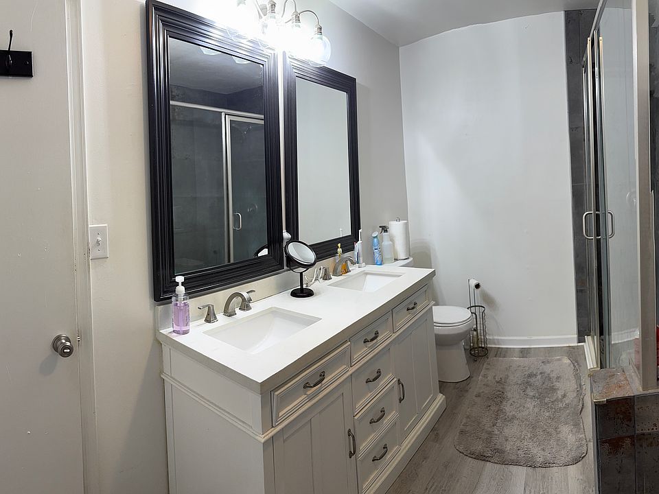 3 rooms to rent. 1 master bedroom with private entry and parking. Large closet, with full bath. 2 bedrooms upstairs, shared bathroom. Full size beds. TV. Access to living areas; stocked kitchen-pots and pans, dishes, dish washer, refrigerator, microwave.. Laundry room has washer and dryer with rods to hang clothing. Large sitting area with TV. Fireplace. Pool and 2 large decks in the rear. Min stay 2 months. Requested 1/3 of utilities. No pers.