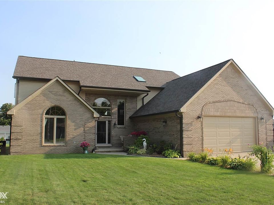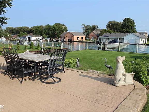 You just found the waterfront property of your dreams! This gorgeous brick home with 2 x 6 construction features a bay doorwall overlooking a deep, wide, free-flowing canal with a view of the river, only minutes to the lake. The steel seawall has a 16 x 36 foot cut-in boat well, and there is also a hoist for up to an 18-foot boat. The entry-level master suite has an adjoining sitting room with direct access to the patio. Most rooms offer a view of the water. Both the upper and lower master suites have whirlpool tubs and separate showers. Newer roof, furnace, air conditioning unit, both hot water heaters, paint, and granite kitchen with custom cabinets.
