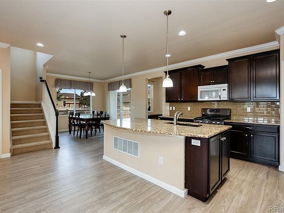 Welcome to this corner lot charmer in Westminster's Shoenberg Farms community with incredible curb appeal and mountain views! Located directly across from Faversham Park where you can daily enjoy its fantastic amenities including a playground, basketball court, lake with fishing dock, and BBQ grills and picnic tables, and lots of nature trails to explore. Once inside, the gorgeous open floor plan greets you with easy-maintenance vinyl plank floors, an abundance of natural light, and a neutral color palette with crisp white trim provide a warm welcome. A modern kitchen will inspire any home chef with abundant dark wood cabinets, a gas stove, pantry, pretty glass tile backsplash, and a large island with counter seating and granite countertops. Open the sliding glass door off the dining room to entertain guests or relax after a long day and enjoy the sunset on the low-maintenance deck that spans the entire backyard. Recently added external speakers provide endless music enjoyment. Upstairs, find a flexible loft space and the home's three cozy and private bedrooms, including the light and bright 5-piece master retreat including a relaxing over-sized jetted spa bathtub. An unfinished basement provides an additional 548' of space to use for storage or finished off for additional living space. Sustainable living and energy saving Solar Panels have been installed for reduced energy bills! Ideally located across from Tepper Fields and Faversham Park and close to shopping, dining, trails & public transportation, this turn-key treasure is waiting for you to move right in and call it home!