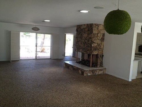 Mid-Century in South Palm Desert. Great separation of bedrooms and huge open living area with stone fireplace. Inviting pool with an abundance of mountain and palm tree views make this feel like a desert resort. Close to El Paseo and Living Desert. Perfect for someone seeking the artist desert lifestyle. Giant bonus room off the master bedroom could be used as a 4th bedroom. In addition, there's a den/office off the living room. With a little updating and TLC this could be the ultimate Mid-Century desert home!