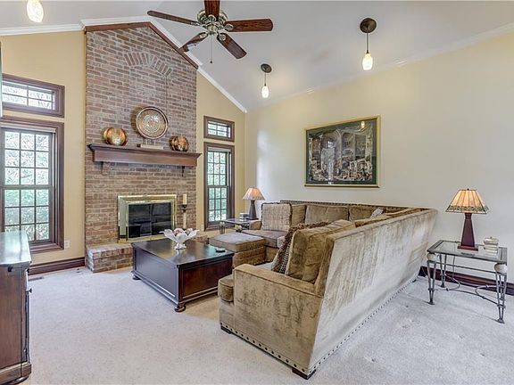 Custom 3BR, 2BA, all brick ranch situated in a neighborhood of much larger, more expensive homes among huge trees on an acre lot. Gourmet kitchen w/newer stainless appliances, pot filler on a tumble tile back splash. 20x16 great room w/cathedral ceilings, fireplace & wall of french doors overlooking a covered 18x10 patio gardens & evergreen treelined back yard. The master is large & luxurious as is the master bath with whirlpool bath & large dressing counter. Did i say custom! When you check this 2093sf ranch with 9ft ceilings through out, you will see.