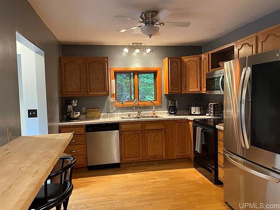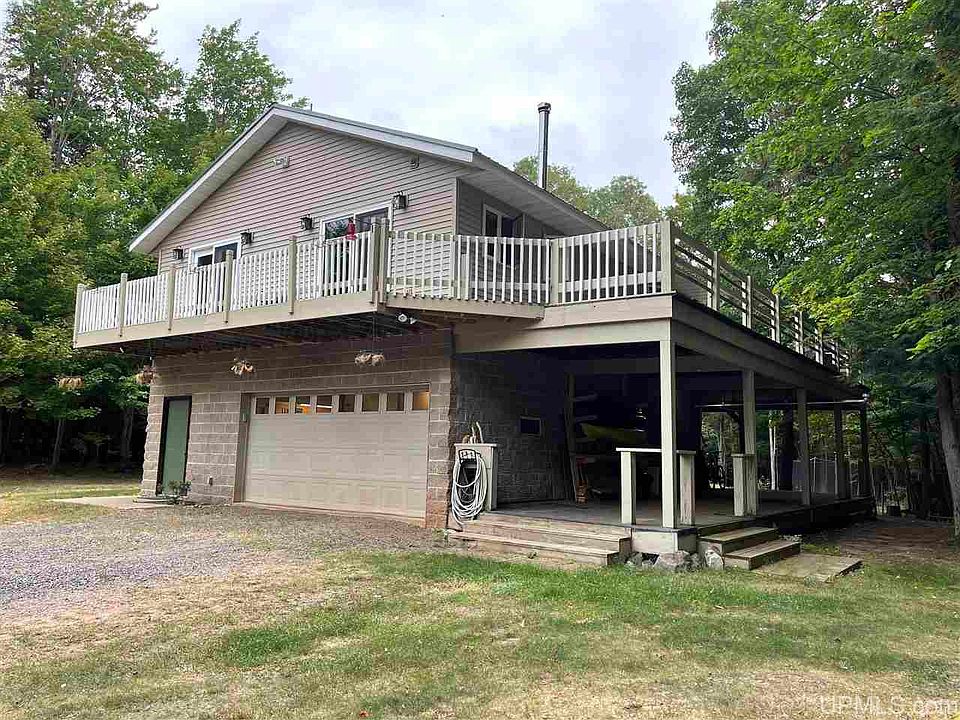 You've been dreaming of this home: a raised ranch with 2 bedrooms and an updated full bath above an insulated & heated 2-car garage, surrounded by 10 wooded acres. Plenty of heated workshop and storage space with the convenience of a main level half bath and laundry room. Covered storage too for all your toys, including those snowmobiles and ATVs, because trail 310 runs right across the driveway in front of this property, and you can walk to the Yellow Dog to wet that fly line. Keep your wood ready for the living room stove under the apron of a HUGE deck. This upper level private deck is the perfect spot for happy hour with friends & family, or just soak in the solitude of the Hemlock canopy. This piece of paradise also comes with chicken coop, dog house, garden, fruit trees, generator and outdoor fire ring along with extra electric hook up and level parking for RV or camper and another cleared space to add that pole barn or additional garage. Best of all, just 20 minutes north of Marquette on County Road 550, or a skip and a jump from Big Bay and the Eagle Mine. Don't wait, properties loaded with all these amenities and move-in ready are a rare find. You can be settled in by deer season!