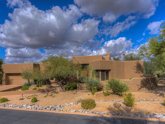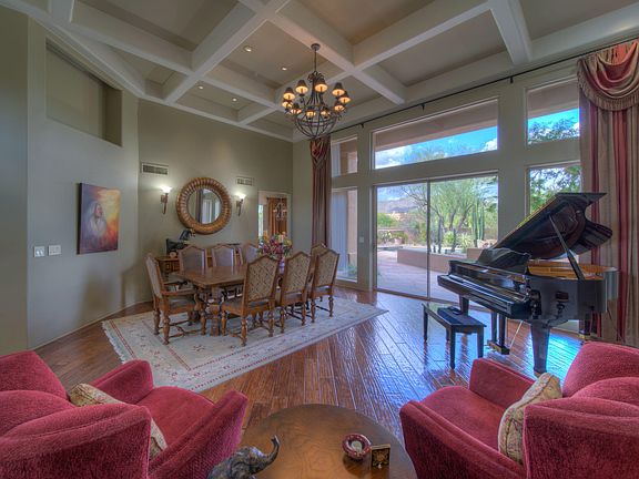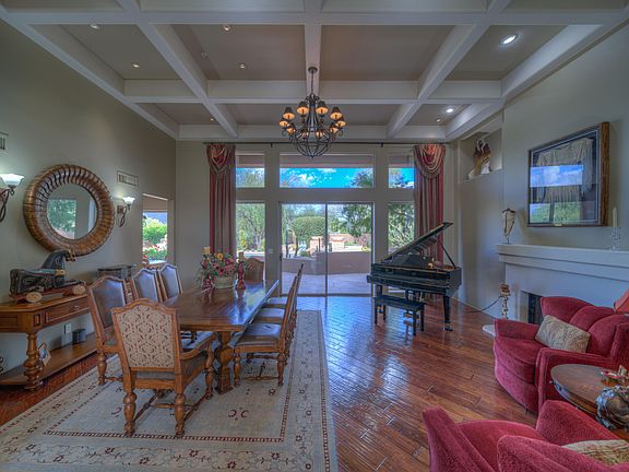 Beautifully appointed 3 bedroom home with one of the best entertaining back yards in The Boulders. Located in a quiet, interior cul-de-sac and perfectly positioned to take advantage of sweeping Black Mountain views. Grand living room with sophisticated hardwood floors, fireplace and coffered ceiling. Open eat-in kitchen with oversized island, 5 burner gas cooktop, SubZero refrigerator adjacent to family room with fireplace and custom woodwork. Wet bar with beverage refrigerator. Generous master bedroom and a spa like master bath. Two other bedrooms each with full bath, one is currently being used as an office. Stylish swimming pool and spa with water and fire features, built in BBQ and ample room for dining al fresco.
