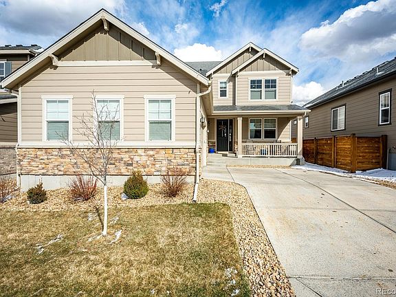 Impeccably maintained six-bedroom, four-bathroom home on one of the most desirable lots in Littleton Village! This light-filled home provides plenty of room for the whole family, including a dedicated study for working from home. The open floor plan on the main floor includes hardwood floors, a large family room prewired for theater sound, a dining area, and a gourmet kitchen with a walk-in pantry, stainless steel appliances, quartz sink, double oven, granite countertops, under-cabinet lighting, soft-close cabinets/drawers. Two furnaces, two air conditioners, a double-sided fireplace from the office to the family room, Hunter Douglas window blinds, ceiling fans that will keep you comfortable, no matter the season - and solar panels(no lease, owned outright) help keep electricity affordable—awesome finished basement for larger families. Enjoy the Colorado lifestyle in your professionally landscaped yard with covered front and back patios and an additional flagstone patio in the back. Relax by the gas fire pit on chilly evenings. TONS of storage throughout the home, including ample kitchen cabinets, walk-in closets, and bonus, unfinished storage areas, and an oversized garage. Welcome home!