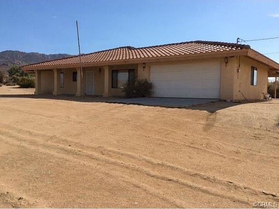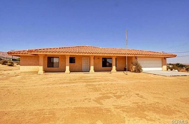 This 3 bedroom 2 bath home sits on over 2 acres of land, most of which is fenced. Home has huge covered back patio, 2 car attached garage, nice large sized bedrooms, extra storage sheds, and is located minutes away from the Joshua Tree National Park entrance.