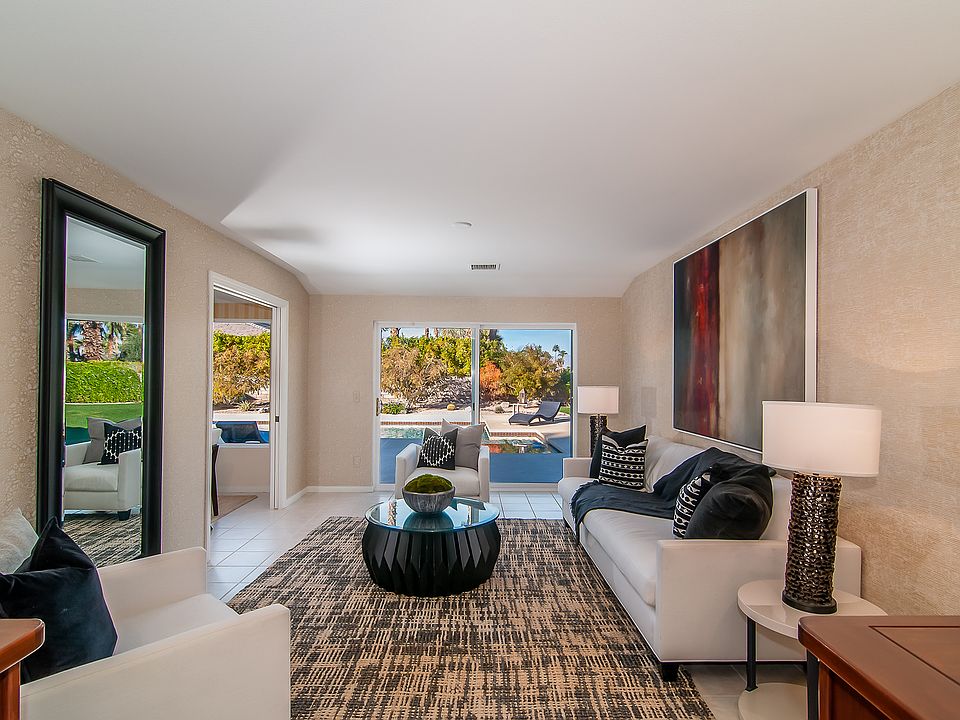 Enjoy the ultimate desert lifestyle in this architecturally stunning custom home, located in Ironwood Heights, Ironwood Country Club, south Palm Desert. This property features mountain vistas to the north as you entertain in your oversized backyard with pool and spa. The impressive desert landscaped entrance brings you immediately to the living room with views of the pool and mountains. Sit at the large kitchen island and take in all of the outdoors. The home has ceramic tile floors throughout with custom carpet accents. The home has a very large master suite with attached master bathroom and walk in closet. The remodeled kitchen/dining great room opens to a spacious area to entertain family and friends. The kitchen offers beautiful wood cabinets, granite counter tops and stainless steel appliances. The large garage has space to accommodate two SUVs and golf cart. Call today to view this home !