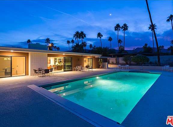 Panoramic 360 degree views, a saltwater spa and 40 foot lap pool with motorized pool cover, and premier design finishes that flow throughout this freshly renovated mid-century modern home that exemplifies a high pride of ownership. Located in Silver Spur Ranch, a boutique neighborhood in South Palm Desert, the floor-to-ceiling renovation is minutes from El Paseo as well as golf courses, tennis courts and hiking trails. Stylish kitchen with extended bar opens to the all-tiled great room that offers views to the north and south, gas fireplace, and dual sliders to outside. The dual all-tiled master suites are located on opposing ends of the house awarding you extreme privacy! Master Suite One offers views, access to the outside, walk-in closet, and a spa bath with two skylights, quartz counters, a walk-in shower, and a separate soaking tub. Master Suite Two has views and a private bath with walk-in shower and access to the outside. New roof, systems, CAT-5 wiring and more!