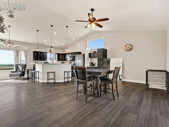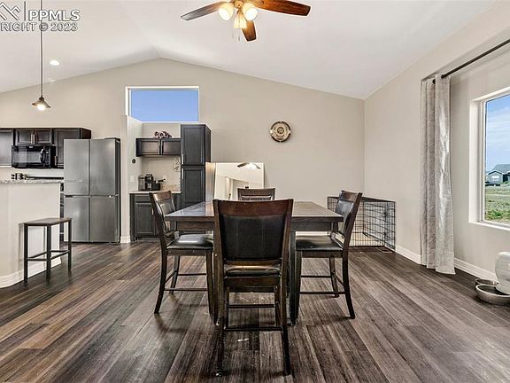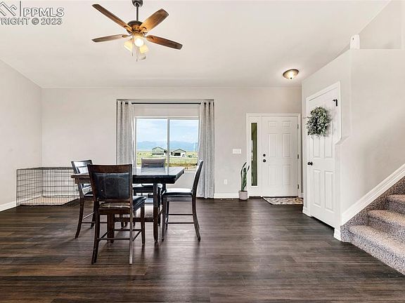 WHY WAIT. Privacy, seclusion and 360 degree views - from Pikes Peak to the Sangre de Cristo's and beyond. This is what awaits you on this 2.6 acre property, zoned for horses and minutes from I-25. The home of almost 2800 sqft has 4 bedrooms, 3baths and attached 2 car garage. As you enter the home, you will be welcomed by the the open & spacious floor plan which includes upgraded luxury vinyl flooring throughout the main floor. The vaulted ceiling gives the main floor an additional feeling of openness. Here you will find the dining room, living room and kitchen which features granite countertops, extended area with additional cupboards and pantry along with the expected appliances in a home of this quality. The spacious master bedroom features a custom closet system with motion sensor lighting. In addition to double vanities, the adjoining master bath upgrades include upgraded shower heads and a barn door separating the master bath from from the master bedroom. Two additional bedrooms and a full bath complete the upper level. In the lower level you will find a modernized fireplace with custom mantle, custom shelving and a walk-out (and doggy door) to a 1/2 acre backyard with 6 foot privacy fencing. The horse ready property features a barn with tack/feed area and run-in plus over 1 acre pasture enclosed by a no-climb horse fence with additional hot wire. The two satellite internet dishes provide more than adequate streaming service. All this and you are minutes from I-25 and Fountain and 15 minutes from Ft. Carson.