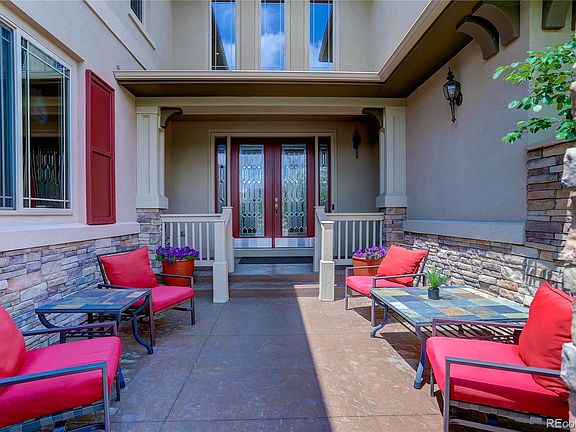 Beautifully landscaped and appointed Tuscan Style, 5 bedroom single family home with study located in the Cherry Creek school district, close to Cherokee Trail High School, Fox Ridge Middle School, Black Forest Hills Elementary School, and recreational activities at the Aurora Reservoir and walking/biking trails. A former Toll Brothers model home, Wetterhorn collection that includes a Princess Suite, georgeously decorated with plenty of room for your guests or family. As a former model home, this house is full of features/options to include a 2.5 car garage, walkout basement with two patios, firepit, lighted seating wall and pondless waterfall. Some of the other options include walk-out bays at the breakfast and dining rooms, whirlpool stainless steel appliances with gas line, double oven and microwave, and several upgraded features like central humidifier, electronic air cleaner, arched entry way, bookcase cabinetry in study, butler pantry with wood/glass cabinets, hardwood flooring refinished in 2018, upgraded stair spindles in 2018, new paint and carpet in 2019, security system, and home speaker system. Large kitchen with granite countertops, under cabinet fluorescent lighting and island with extra cabinetry. Kitchen opens to breakfast area and great room on one side, and butler pantry and dining room on the other side. Landscaping includes a secluded area for a hot tub, deck off the breakfast/kitchen areas, solid copper accented pergola that contains a garden, and copper fixtures lighting a walkway. Landscaping is fully automated for water and power, designed for ease of maintenance. From the front, courtyard with stunning beveled glass entry, and from the back view of the Rocky Mountains. Basement includes Bedroom, Full bath, Walk-in Closet, Living room, Full Kitchen, and Breakfast area looking out to the walk out patio. The basement also has two unfinished rooms and a large storage area.