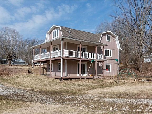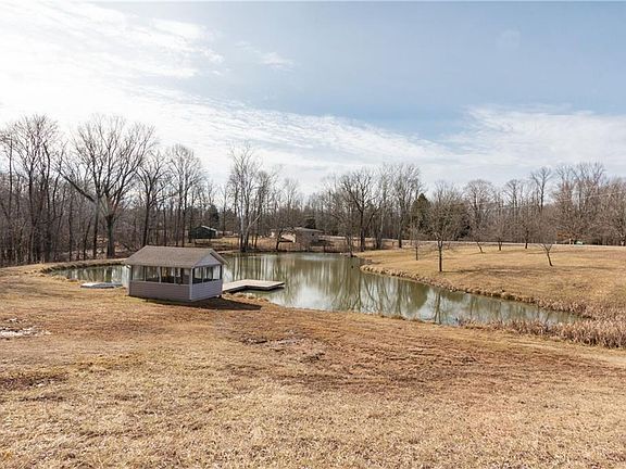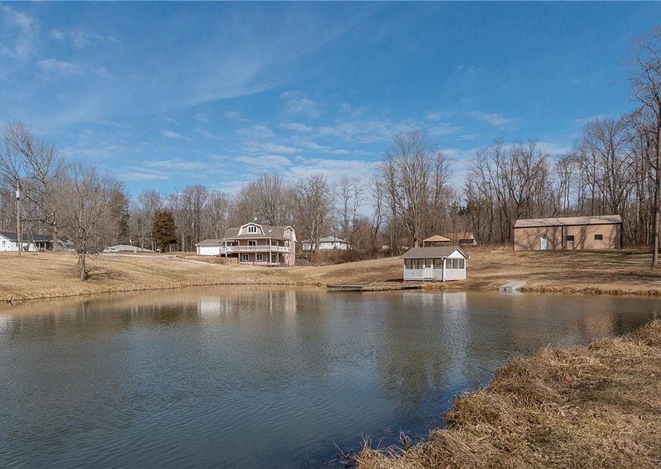 Unique opportunity! Gambrel Farmhouse design! FEATURES: 2.88 acre parcel, spring fed pond, walk out basement with large recreation bonus room, two level wrap around porch, over sized two car attached garage, laminate hardwood flooring, recently remodeled kitchen with newer stainless appliances, Recently remodeled baths 3 years back, five potential bedrooms with full bath on main level for possible in-laws suite, built in upstairs study nitch, screened porch with electrical by pond with boat dock, etc.... Newer 1440 sq ft pole barn was built in 2011 & features insulated walls, cement floors. Easy access to I-70 up St Rd 39 North or Martinsville for shopping to South. Fruit and mature trees on property. Stay-cation living!