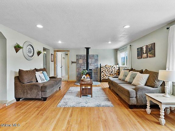 This home surrounded by mountain views & wide-open spaces, is located between Coeur d'Alene and Sandpoint and about 13 miles north of Silverwood, 10 miles from Bayview & 1.5 miles on a county-maintained road from I-95. This potential horse property is on a flat 4.99 acre lot w/a nice pasture & several outbuildings. The manufactured home's interior has nice contemporary additions like sliding barn doors, wood LVP flooring, neutral colors & closet organizers. There is a den area. The exterior features a covered BBQ area, fenced-in organic garden, approximately 3-acre pasture, 16 x 22 green shed, 2 RV parking spots w/ electricity. The 30 x 60 Shop, 32' x 34' garage & 22' x 20' open sided buildings are great for animal care, equipment and hay storage.