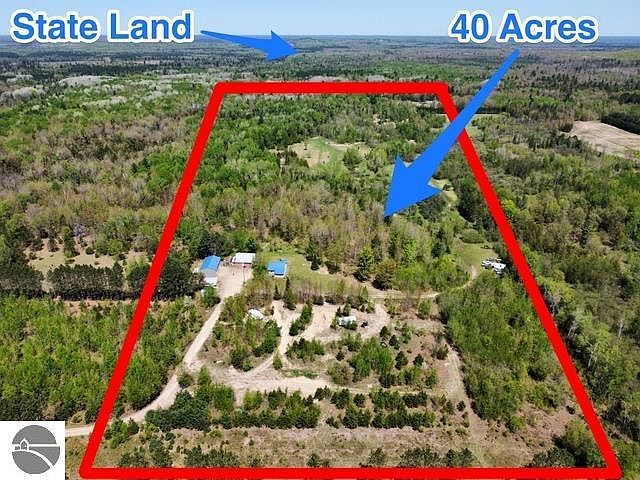Looking for a Secluded one-of-a-kind property with a creek running through it on 40 spectacular Hunting Acres, then look no more! This 3 Bedroom, 1 bath home backs up to State Land and has New Large Pole Barn (30x56) with 15 ft walls and Insulated with concrete floors that are 8 inch thick on one side and 5 inches thick on other side and in two spots is 12 inches thick under the hoist area. Great Garage for the mechanic or repair enthusiast. There are six 220 electric outlets and a 12ft x 13ft tall door, 10x10 door. Step inside the home which has so much charm. New updates included are: metal roof, siding, furnace with A/C , bathroom, shower, drywall, tongue and groove ceilings and appliances and cabinets. The Large Beautiful Living Room allows you to see the outdoors all year long and take in the beauty of the property and all its animals that call it home. The living room and dining area have plenty of space and light with the wood stove to heat the space. The upstairs is open an overlooks the kitchen and dining area from above. Upstairs you will find two more bedrooms. There is a gas heater wired and ready to be hooked up, Currently owners heat 100% by wood. Great hunting and secluded living. Don't miss this one!.