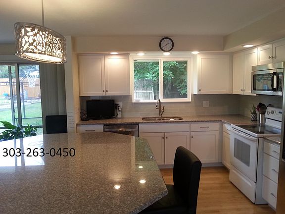 Sorry, NO PETS. Main floor has been updated into a beautiful great room, with newer kitchen cabinets and granite countertops, with a large kitchen island for entertaining! Upstairs is the master bedroom with 3/4 bath, along with two additional bedrooms and full guest bathroom. Lower level off the 2-car garage has a mudroom and bedroom with bath. The basement is finished with a family room, additional recreation room, and storage room with cabinets and shelving. Nice back yard, and the house sits on the corner of a cul-de-sac. Medema Park and Tony s Meats is within walking distance! Close to DTC and I-25. Award winning Littleton Public Schools. House is located near Dry Creek and Holly. Tenant pays for trash.