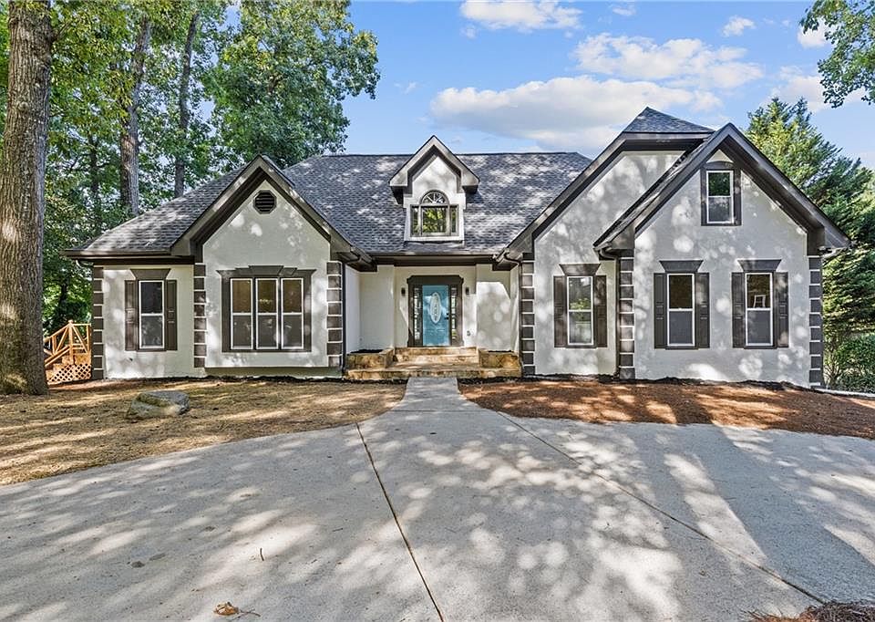 THIS HIDDEN GEM IN STONE MOUNTAIN WON'T LAST LONG! A LUXURIOUS 6 BEDROOM, 4 BATHROOM BEAUTY AWAITS YOU RIGHT ON THE LAKEFRONT. THE MASTER SUITE ON THE MAIN LEVEL OFFERS BREATHTAKING LAKE VIEWS THROUGH A CASCADE OF WINDOWS. RELAX IN THE GUNITE POOL AND HOT TUB IN YOUR PRIVATE FENCED BACKYARD. PARK UP TO 3 VEHICLES IN THE SPACIOUS 3-CAR GARAGE WITH BUILT-IN STORAGE. ENJOY COZY EVENINGS BY THE FIREPLACE OR BRIGHT DAYS WITH SKYLIGHTS IN THE FAMILY ROOM. THE FINISHED BASEMENT INCLUDES A FULL BATH AND A SECOND KITCHEN, PERFECT FOR GUESTS. THIS HOME HAS BEEN COMPLETELY RENOVATED WITH BRAND NEW BATHROOMS, A GORGEOUS KITCHEN FEATURING QUARTZ COUNTERTOPS, WALL OVEN, MICROWAVE, COOKTOP, AND CABINETS, PLUS NEW AIR CONDITIONING, ROOF, PAINT, WINDOWS, AND DOORS. START YOUR DAY WITH COFFEE ON THE DECK OR LIVING ROOM, IN THE STUNNING LAKE VIEWS. WATER'S EDGE COMMUNITY OFFERS UNPARALLELED AMENITIES INCLUDING A SOCIAL & FITNESS CENTER, SAILING, FISHING, SWIMMING, TENNIS, BOAT LAUNCH, CLUBHOUSE, BASKETBALL COURTS, AND PLAYGROUNDS. DON'T MISS OUT ON THIS SPECTACULAR HOME! WELCOME HOME!