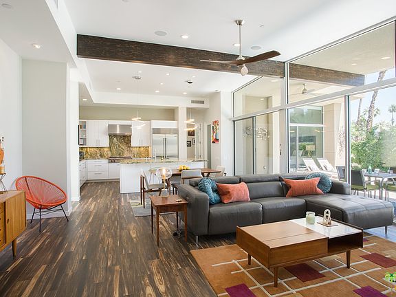 This meticulously designed, open concept mid-mod is newly built and offered turnkey furnished making it the perfect short-term vacation rental or your very own private desert retreat! Tucked away just steps from El Paseo and striking the perfect balance between design and comfort showcasing the best in high-end designer finishes throughout including a gourmet chefs kitchen complete with Wolf & Sub Zero appliances and built-in cappuccino machine, open-concept great room with dramatic wood beamed ceilings and walls of glass featuring Fleetwood doors and windows overlooking the exceptional indoor-outdoor desert living space with saltwater pool/spa that can be either chilled or heated, Tumi poolside built-in umbrella system, patio misting system, gas BBQ, sonos surround sound system, climate controlled 2200 bottle wine room, automated window coverings, owned solar system and an app to control it all with the push of a button - welcome to your desert dream home!