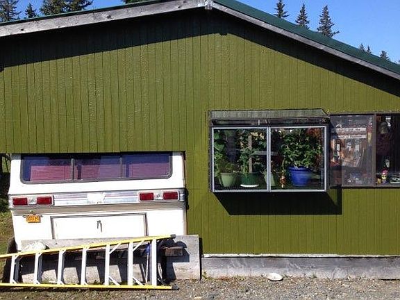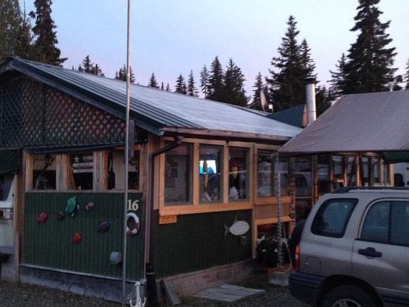 Fifth wheel camper under roof. Great location close to Anchor River. Enjoy the warmth of the fire all summer long.