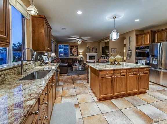 Located in the hills adjoining Orange and Anaheim Hills in the planned development of Serrano Heights, this stunning Mediterranean inspired home boasts impressive architectural detail, dramatic stone hardscape and breathtaking views of hills, city lights and on a clear day, Catalina Island. Approx. 2,630 square feet, its two story floor plan has voluminous ceilings, granite counters, dual pane windows, a large second level landing that accommodates a work station with desk, plus 3 spacious bedrooms - all with ceiling fans. The main level den could convert to a 4th bedroom. The master suite features a sitting area, view balcony and lavish bathroom suite with soaking tub and stall shower. The stunning open concept kitchen with large center island featuring an eat-in bar and top caliber stainless steel appliances adjoins the family room with fireplace. There is also a separate formal living room, dining room with built-in buffet cabinet, two central AC units and attached 2 car garage with a custom roll up door. Outside, a beautiful setting awaits with dramatic up-lighting, rock formation Koi pond with waterfall, cozy covered patio with ceiling fan, spacious grassy yard, towering palm trees and blooming gardens. Close to parks, hiking, schools and shopping.
