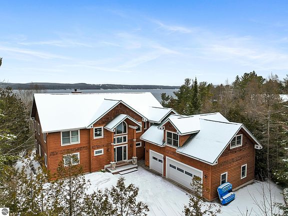 Lake Charlevoix awaits! Very open, very warm, very classy. Freshly remodeled kitchen with top of the line appliances, new mud roomand foyer makes for a fantastic arrival into this open and inviting home on the lake. The construction is of very good quality andworkmanship. 102' of Lake Charlevoix frontage and lots of windows bring the light and sparkle indoors, accessorizing the bright colorsand fresh places throughout this charming home. Deck designed specifically for optimal lake views! Good use of space means you'llhave room for everyone - even in the 10-person sauna! Price includes guaranteed fun in the sun so make sure your summer plansinclude the lake!