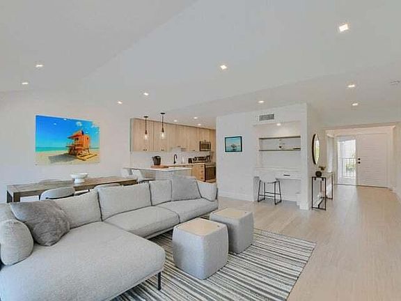 JUST REDUCED AND PRICED TO SELL! Newly renovated and tastefully FURNISHED modern open 2 bedroom/2 bathroom apartment in the Gardens of the Grove . High end designer renovation including IMPACT GLASS, look porcelain floors, contemporary wood kitchen with quartz countertops with all new appliances, and two spectacular bathrooms. All LED white lighting throughout. Beautiful expansive garden and golf course views from living room and kitchen. Expansive windows and volume ceilings from top floor create a ton of natural light. Unit has plenty of inside and private outside storage. Unit comes with parking for cars and golf cart. THIS UNIT IS TURNKEY!!! Renter already in place for $10,000 a month from Dec 1 2023 to April 30 2024.BOCA GROVE IS AN EQUITY COMMUNITY WITH COUNTRY CLUB DUES.