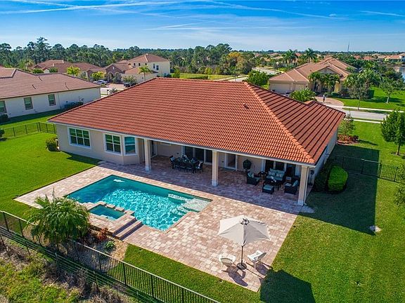 Gorgeous Estate Pool Home in gated Tres Belle! Deauville Model by Kolter Homes is CBS newer built, Barrel tile Roof, IMPACT WINDOWS & DOORS! This 4/4/3 Beauty features an Elegant Exterior on 1/2 Acre Preserve Lot! Every Room has a stunning view. Open Concept floor plan. Featuring soaring ceilings, walls of windows & doors an abundant Natural Light. Enjoy outdoor living at its finest : Expanded Covered Patio w/ multiple outdoor living spaces. The perfect place to entertain. Chef's Kitchen w/ 42'' Cabinetry, S/S appliances, expansive granite counters, gas range, Butler's Pantry & breakfast room. Expansive Family Rm overlooking pool. Luxurious Owner's Retreat w/ coffered ceiling, his/her walk-in closets & sliders opens to pool. Fenced Rear Yard, Lush Landscape. Long list of upgrades!