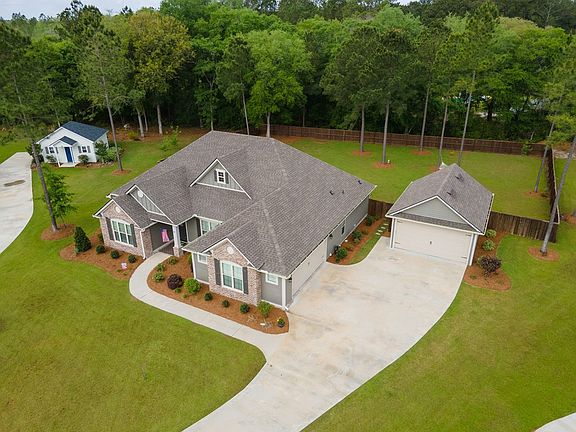 Stunning, Custom, Property for Sale in Hahira, GA! This Blake Taylor home was built in 2019 & sits on a 1-acre lot in a cul-de-sac. Great open floor plan complete w/ designer finishes & high ceilings. Spacious living room w/ brick fireplace. The gourmet kitchen features a large island, SS appliances, granite countertops, walk-in pantry & more. Eat-in breakfast nook & formal dining room. Owner's suite equipped with a HUGE walk-in closet, dual sinks, tile shower, soaking tub & a makeup vanity. Additionally, there is a guest master and two bedrooms that share a Jack and Jill set up. Screened porch with tile floor overlooks the large fenced & landscaped yard. Oversized attached garage & a free standing 2-car garage w/ a 10-foot garage door. So many upgrades that you won't see in even a brand-new home! Neighborhood amenities include two pools, a playground & fishing pond w/ a walking trail.