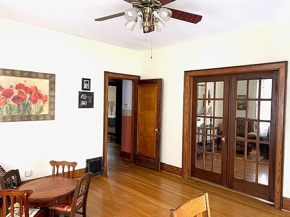 Charm and character to this 3 bedroom, 3 bath brick home located in town! Welcome home to the large inviting front porch!.Beautiful hardwood floors and trim throughout most of this lovely home. Main level offers living room, dining, and or another living area with gorgeous glassed french doors. Kitchen, master bedroom, main bath, and a pantry area .Upper level offers 2 bedrooms, full bath, and a sitting area. Full basement with living room area, laundry room, and full bath. Large storage area as well. Back covered patio area, fenced back yard, storage shed, and a covered carport! This quality home is well maintained!