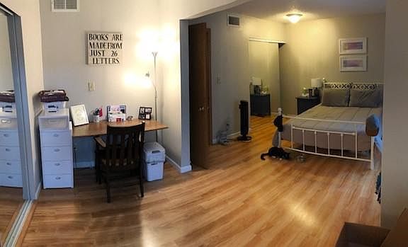 OFFICE IN HOME TOTAL RENOVATION This is a 2 BEDROOM that has been reborn as A one bedroom with OFFICE A TOTAL renovation from a two bedroom. This is the prefect residence for "work at home". The bedroom suite w/office can be closed from the open Livingroom/Kitchen. The bedroom portion has a large closet with the den/office area having a HUGE closet/storage. On TOP of "THE HILL" on a TREE-LINED RESIDENTIAL STREET. VERY CLEAN & QUIET NEW EAT-IN KITCHEN W/dishwasher. Ceramic tile floors in kitchen, bath & CLOSETS. Wood floors in L.R. ,Br. and DEN. PLENTY of FREE OFF-STREET PARKING