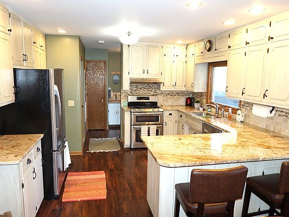 Look no further than this move in ready ranch style home with a oversized 2 car garage and over 2500 square feet of finished living area with 4 bedrooms and 3 bath areas. Large kitchen with granite countertops and dining area. Main level laundry with wash sink and door to back yard. Primary bedroom with 3/4 bath. You are sure to love the lower level with built in cabinets, real wood burning fireplace, bedroom, and 3rd bath area. Large storage room for all the extras. It doesn't end there out back you have all the entertaining space you will need with large deck with pergola, patio area, and storage shed. Included with sale are 2 refrigerators, upright freezer, and washer and dryer. Call today and make this one your home!