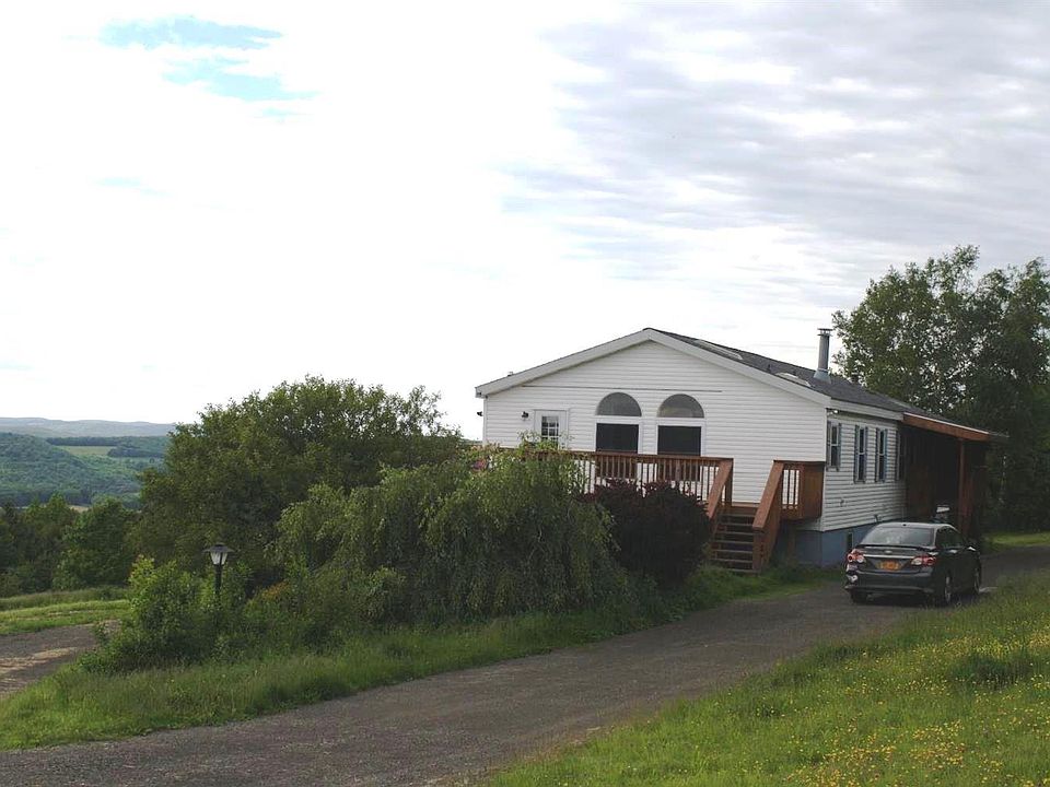 Price reduction for fast sale!!! Located just 12 minutes from Cooperstown at the end of a cul-de-sac with a long private driveway. Peace, quiet and seclusion!!!!! Perhaps the single most spectacular mountain view in Otsego County. On a clear day you can see to Norwich!!! This home has something for everyone. While it is not off-grid, it has strong off-grid capabilities with propane fired, whole house wired generator. Downstairs is a separate living quarters with kitchen full bath and two bedrooms. Oversized basement garage with work area. Two kitchens, two living rooms, 5 bedrooms. Fruit trees, some woods (almost all open). Very beautiful landscaping on 17 acres. This large home is placed on a full finished foundation and basement. Also includes full house hard-wired generator and 300 gallon gas tank as well as 500 gallon underground propane tank and propane fired on-demand hot water. The view cannot be fully appreciated by photograph, it simply must be seen. It is truly an amazing property. If you want self sufficiency, seclusion and a picturesque home, you won't find this deal anywhere else for the price!!!!