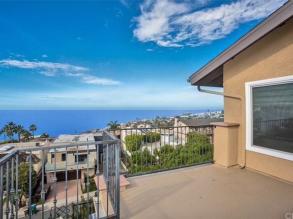 Panoramic Ocean View! This beautiful modern style home awaits you in the heart of Laguna Beach. Stunning Ocean and Coastline Views abound from this beautifully appointed single family home on top of the hills. Tile floor, custom Granite Counter tops. Recessed lights every where, top of the line stainless steel kitchen appliances, fireplace in living room and master bedroom, Two car attached garage. modern style bathrooms. Kitchenette in upper level is so convenient that you do not have to come down stairs for evening snacks. Deluxe master bedroom retreat with vaulted ceilings and ocean view deck. Private deck from each bedroom upstairs. Close to walking trail that takes you to Top of the World. Parks and tennis courts. Single loaded street.