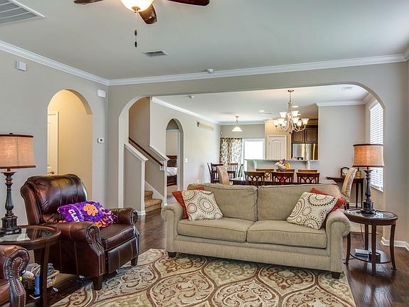 This gorgeous 5 BR, 3.5 BA home has 2996 SF in Providence Landing features granite, hardwoods, stainless appl., Double oven, pantry, open floor plan, arched doorways, Fireplace w/ gas logs, walkin closets, Large Master BRs down AND upstairs, X large master shower, upstairs Living Rm, larger capacity water heater, Energy Star Home, community pool.