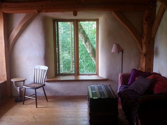 Serene off-grid solar Timberframe/Strawbale home on secluded 20- acres. 870 sq ft house,with open floor plan, beautiful natural wood and plaster details, sleeping loft and guest space. Root cellar. 120 sq ft side shed with loft and wood shed attached. detached storage treehouse. Wooded, mostly hardwood. All the firewood you need. Wood heated with backup propane heat. Fridge, cookstove and hot water all run on propane. 1.5 miles from Roxbury village, facing east with early morning sun and view of the mountains. Some open land ( about 1 acre) at the house site. Room for additional structures and/or subdivision. veggie gardens, fruit trees: plums, pears, apples, cherry, kiwi,grapes, nut trees, blueberry bushes, and flower gardens. Small spring-fed pond. drilled well in place. back country skiing and hunting on your own land which abuts state land. 25 minute drive to Sugarbush and Mad River Glen ski resorts. Mt. biking trails. Greywater system and composting toilet. Root cellar. Built 2008. Currently has mortgage and home insurance. utilities: propane : $90.00/month property taxes: $250/month phone and internet: $90/month