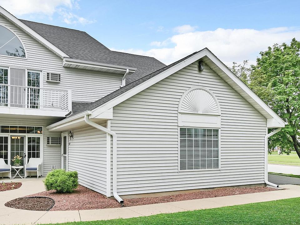 NO STEPS! This first floor condo is ready to move in if you are looking for a place with no steps. 2 bedrooms, 2 full baths, large open great room, convenient kitchen with walk in pantry, and private entry. Newer LTV flooring throughout. New roof on both buildings and no lawn to mow or snow to shovel. Limited private area outside the front of your unit where you can do your own planting beds. Patio doors out of the great room leads out to your own patio. Close to I-94 for the commuters.