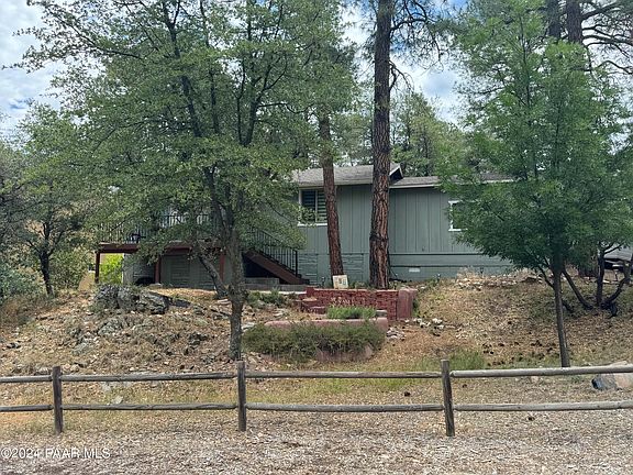 Don't miss the beautiful home in the Mountain Club, nestled amongst the amazing Pine trees and minutes to downtown Prescott. You will love the vaulted Knotty Pine ceilings and cozying up to the wood burning corner fireplace. This home has lots of parking, a large front yard and still offers a lovely fenced backyard with room to roam and privacy fence. You will enjoy a cup of coffee on the front porch, listening to the gentle breeze and birds chirping. NO HOA. Metal storage shed and crawl space offer more storage. Tankless Hot water heater too! You will want to schedule your showing today!