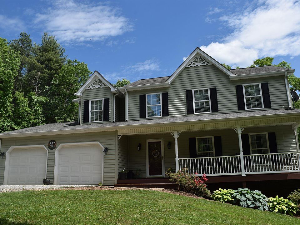 A beautiful well maintained family home located in the peaceful country setting of Floyd County. Built in 2007 this 3 BDR, 2.5 BTH stick built home is constructed from 2x6 walls and offers nearly 3,400 sq ft of living space. A few highlights include: Cherry hardwoods, tiled kitchen and bath flooring, unbelievable master bedroom and full bath, zoned heating / air, outdoor wood stove, generator hookup just to name a few. Nearly 7 acres of mostly woods creating seclusion and privacy. A two bay attached garage and basement area makes a great place for storage. Relax in the evenings with your guest on either the front porch or rear deck which offers a custom designed outdoor fire place. Looking to have a few chickens, a chicken coop is already built and ready for use. Located less than 15 minutes from the Town of Floyd and within a half hour to New River Valley and Roanoke areas.