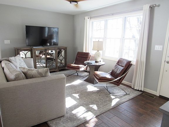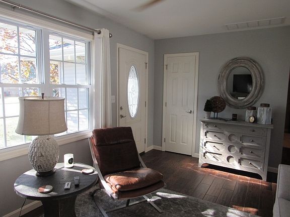 Absolutely adorable inside and out! Looking for an open floorplan, a great master suite, and all of the latest finishes? This home was stripped down to the studs and completely remodeled recently. A beautiful wood-look tile floor runs throughout the home expect for cozy carpet in the bedrooms and a pretty accenting tile in the bathrooms. The kitchen features stainless appliances, pretty white cabinets and a mobile island. There are patio doors off the dining room that lead to the back deck. The master suite has a large walk-in closet and an over-sized bathroom with a over-sized tub with tile surround. The other two bedrooms are nice sized and have good closet space as well. The mudroom off the side door has lots of cabinets for extra storage and a wood trimmed wall with adorable storage hooks. There are also built-in storage shelves in the laundry room. The 2 car garage is insulated, has shelving and work benches, and a lean-to that covers the patio area. Includes: Refrigerator, range/oven, dishwasher, microwave, disposal, washer, dryer, TV mount in Master bedroom, garage refrigerator, garage shelves and workbenches. Excludes: Garage heating/cooling unit, black dog fence, TV in Master bedroom, TV and wall mount in garage, wall hooks and jars in mudroom. This home will not disappoint!