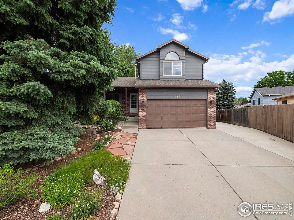 Don't miss this incredible opportunity! This beautifully renovated 2-story home is nestled in the Evergreen Meadows neighborhood in Loveland. The current owners spared no expense in transforming this home into a true gem. Enjoy the luxury of new floors throughout, brand-new A/C and furnace for year-round comfort, and a freshly painted interior that exudes sophistication. The kitchen features white cabinets, granite countertops, a sleek subway tile backsplash, and brand-new refrigerator and all stainless-steel appliances. The sink and ample cabinetry provide both style and functionality. Unwind in the cozy family room, complete with a charming fireplace framed by white built-in cabinetry. This inviting space is perfect for gatherings with loved ones or quiet evenings by the fire with French doors that lead you to the outdoor living space. Step outside to the expansive deck perfect for entertaining. This home is situated on a generous 0.32-acre lot with mature landscaping and beautiful perennials. This tranquil setting offers privacy and serenity in a cul-de-sac location with views of Longs Peak. The upstairs features a primary bedroom with large windows for lots of natural light and a full bath with double vanities, two additional bedrooms, and a full bath. The basement boasts a versatile basement suite with a full kitchen and bath, offering endless possibilities as a fourth bedroom or potential rental income opportunity. Previous tenants were paying $1200/month, adding significant value to this exceptional property. No HOA restrictions mean the freedom to park your RV or other recreational vehicles with ease. With a two-car garage, brand new washer and dryer, and travertine tile accents in the kitchen, every detail of this home has been thoughtfully considered. Conveniently located where residents enjoy easy access to outdoor recreation, grocery stores, restaurants, schools, and more.