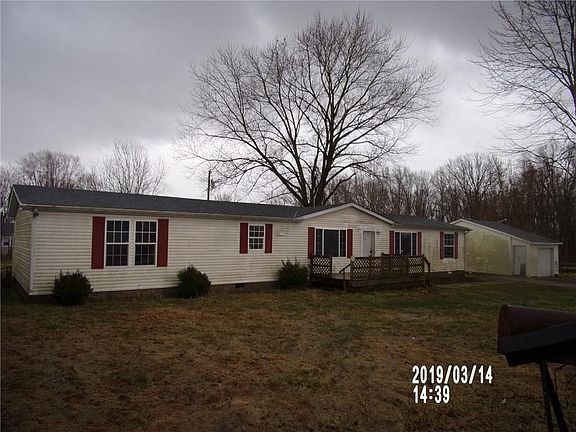4 bedroom 2 bath manufactured home with detached 1 car garage. Home sets on a large lot with a deck on front and back of home.