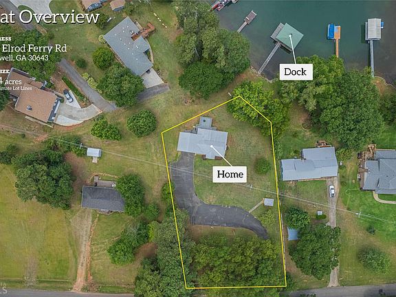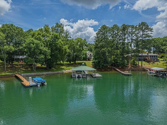 Gentle walk to the lake and dock from this spacious home on Elrod Ferry Rd. Large lot with great curb appeal and plenty of paved parking. Pretty metal roof. Home has two bedrooms and two baths on the main and upper floors, currently using a sun room as a third bedroom. Wood burning stove in a rock fireplace. All kitchen appliances included. Solid wood cabinets. Great views of the green back yard and lake from the spacious trex decks. This home has a finished basement with a second kitchen, additional bedroom, bath and living area. This second living space has it's own entry from the garage or outside. Some flooring needs to be replaced from a water leak that has been repaired. Dock has a hip roof, double slip and aluminum gangway. This one has been loved and enjoyed for many years! Minutes from downtown Hartwell and Hartwell. Not far from Anderson or Clemson. Property is part of an Estate and being sold AS IS