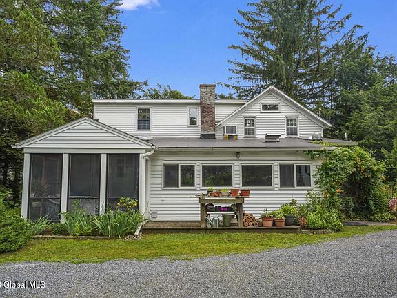 This idyllic home with many custom built-ins boasts a sunny, bright chef's kitchen with six burner gas stove with grill, original hardwood floors throughout, home office space, 3 bedrooms and 2 bathrooms in the main house, studio, massive garage/barn workspace, two charming porches, and well-tended mature gardens and evergreens on 2/3 of an acre - all in desirable Bethlehem school district. Close to town park, less than 5 minutes to Glenmont center and fifteen minutes to Albany.